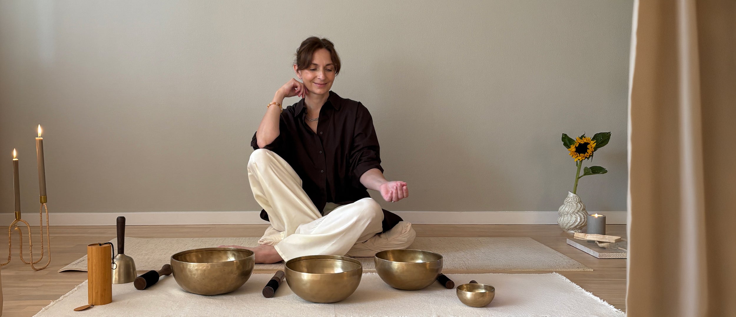Michèle Gabrielle, Gabi, er lydpraktiker, certificeret meditations- og yogalærer, reiki-healer samt holistisk og intuitiv guide. Hun guider og hjælper mennesker over hele verden med at komme i kontakt med deres sande essens og deres kraft. Gabi bruger Himalayas syngeskåle i sin daglige praksis. Hendes hensigt med virtuelle lydrejser er at skabe et trygt rum, hvor du kan slappe af og opleve fordelene ved et lydbad.